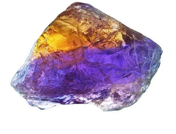 El citrino amarillo amatista, también conocido como ametrino, es una piedra única que combina las propiedades del citrino y la amatista. Es una variedad bicolor de cuarzo que muestra una división clara entre colores, presentando áreas de color amarillo dorado típico del citrino y zonas de color violeta característico de la amatista.