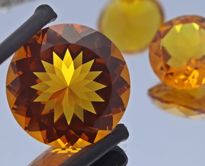 Citrino Madeira: Es un tipo de citrino que presenta tonos más intensos y profundos, generalmente con matices amarronados o rojizos. Su nombre proviene de la región portuguesa de Madeira, famosa por su vino fortificado y su madera de caoba de alta calidad, cuyos tonos ricos y cálidos son similares al color del citrino de esta variedad.