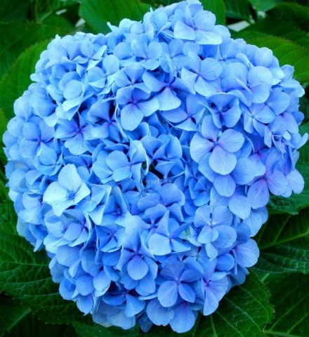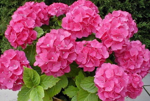 Las flores de hortensia son de color blanco violáceo o rojo, aunque la más común es la de tonos rosados, para conseguir que se den las flores de color azul es necesario que el suelo sea rico en hierro y aluminio.